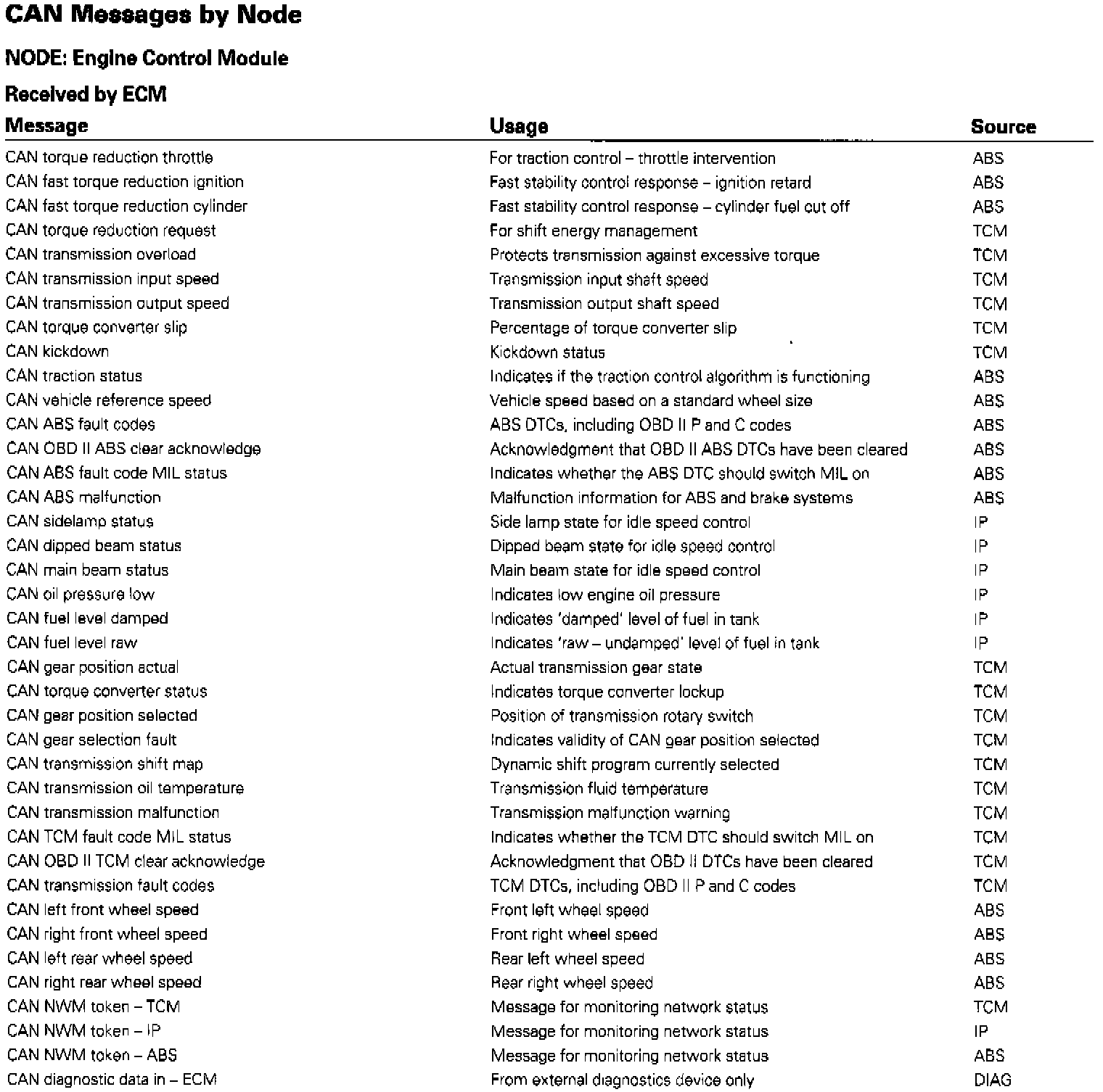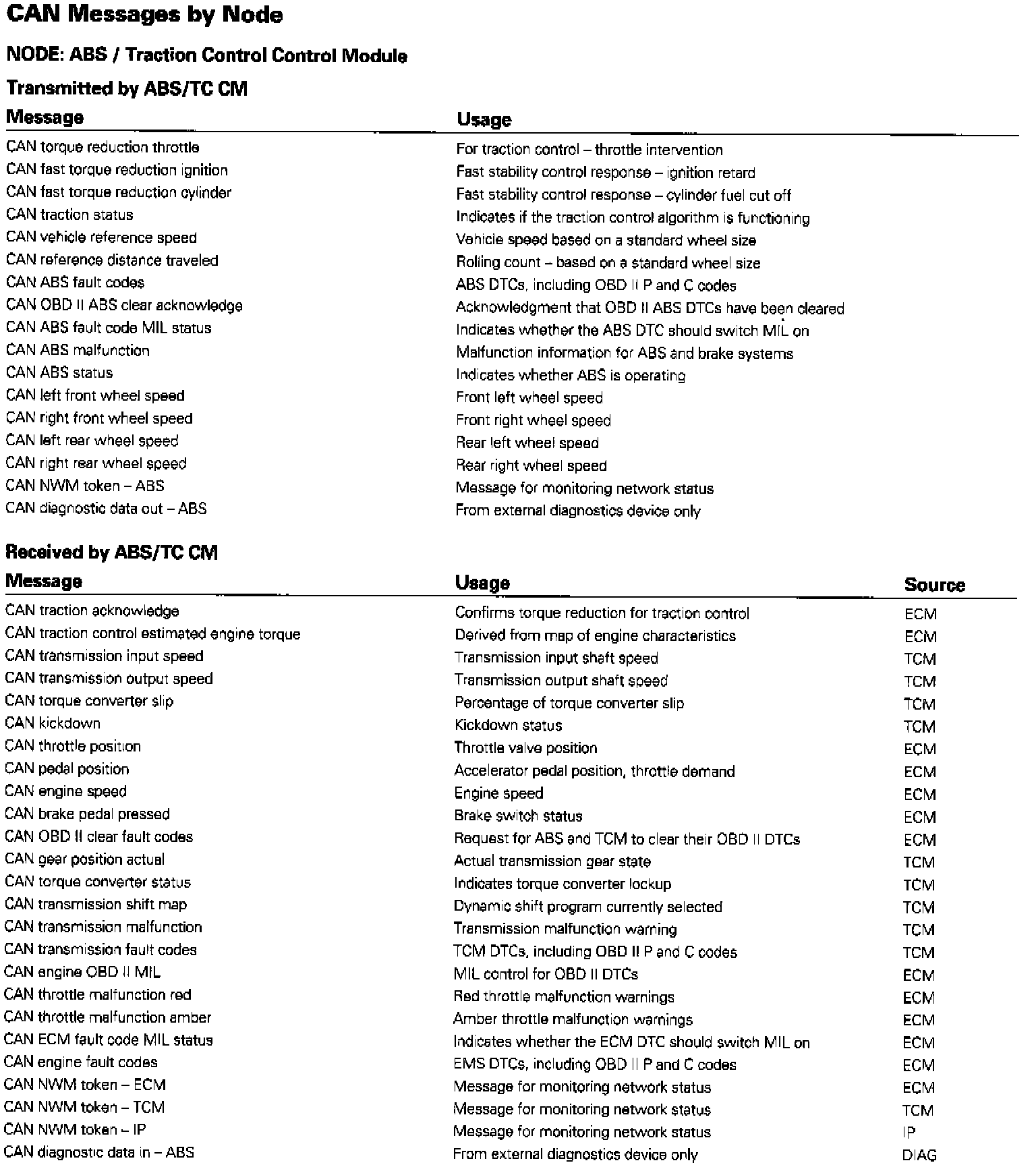 CAN Messages by Node: Transmitted/Received by ABS/TC CM