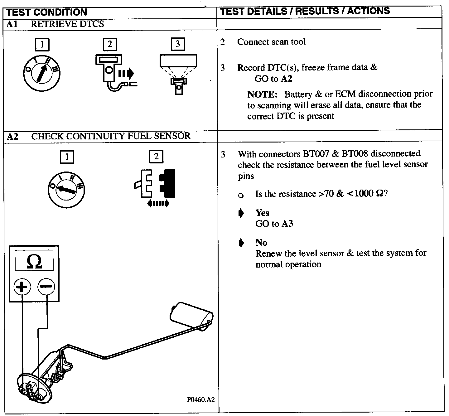 Pinpoint Test For DTC P0460