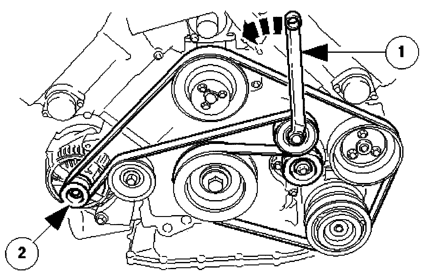 (1) Use a spanner e.g. Churchill JD-230 or Snap On XDHM 1415, on the centre bolt of the belt tensioner idler pulley, to turn the adjuster assembly to the left against spring tension.