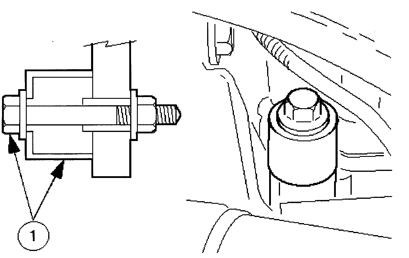 (1) Position a suitable length bolt through the bush, fit a tubular spacer or socket spanner, fit a nut and tighten the assembly to move the bush slightly. Remove the nut, bolt and spacer.