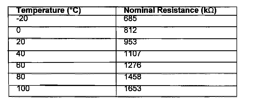 Temperature/Resistance Relationship Chart