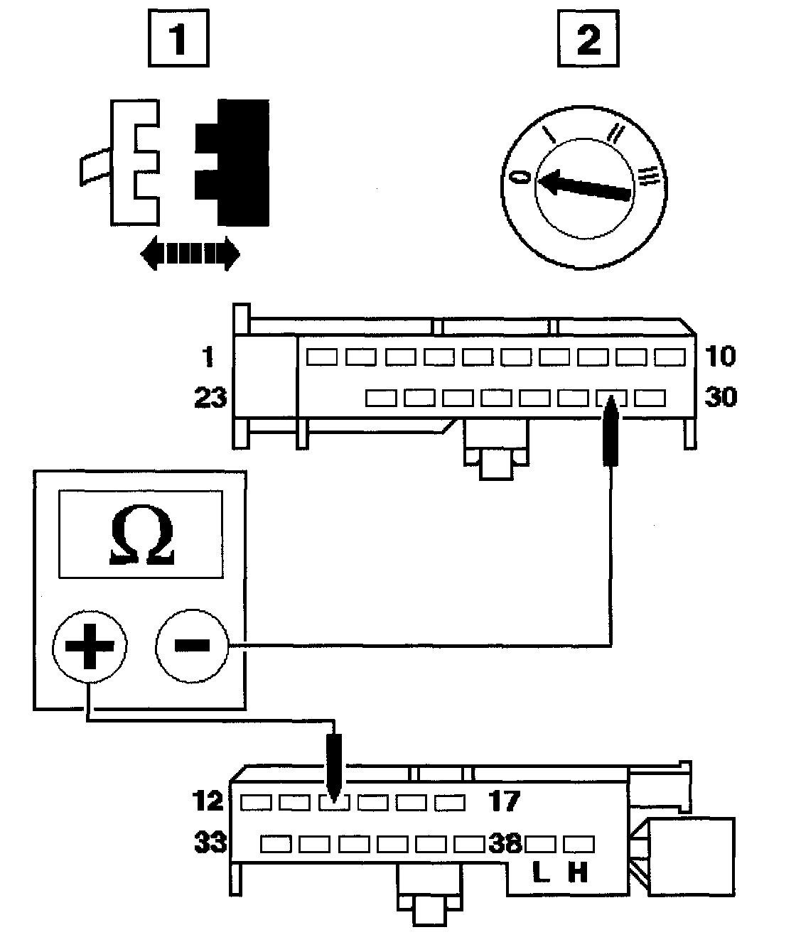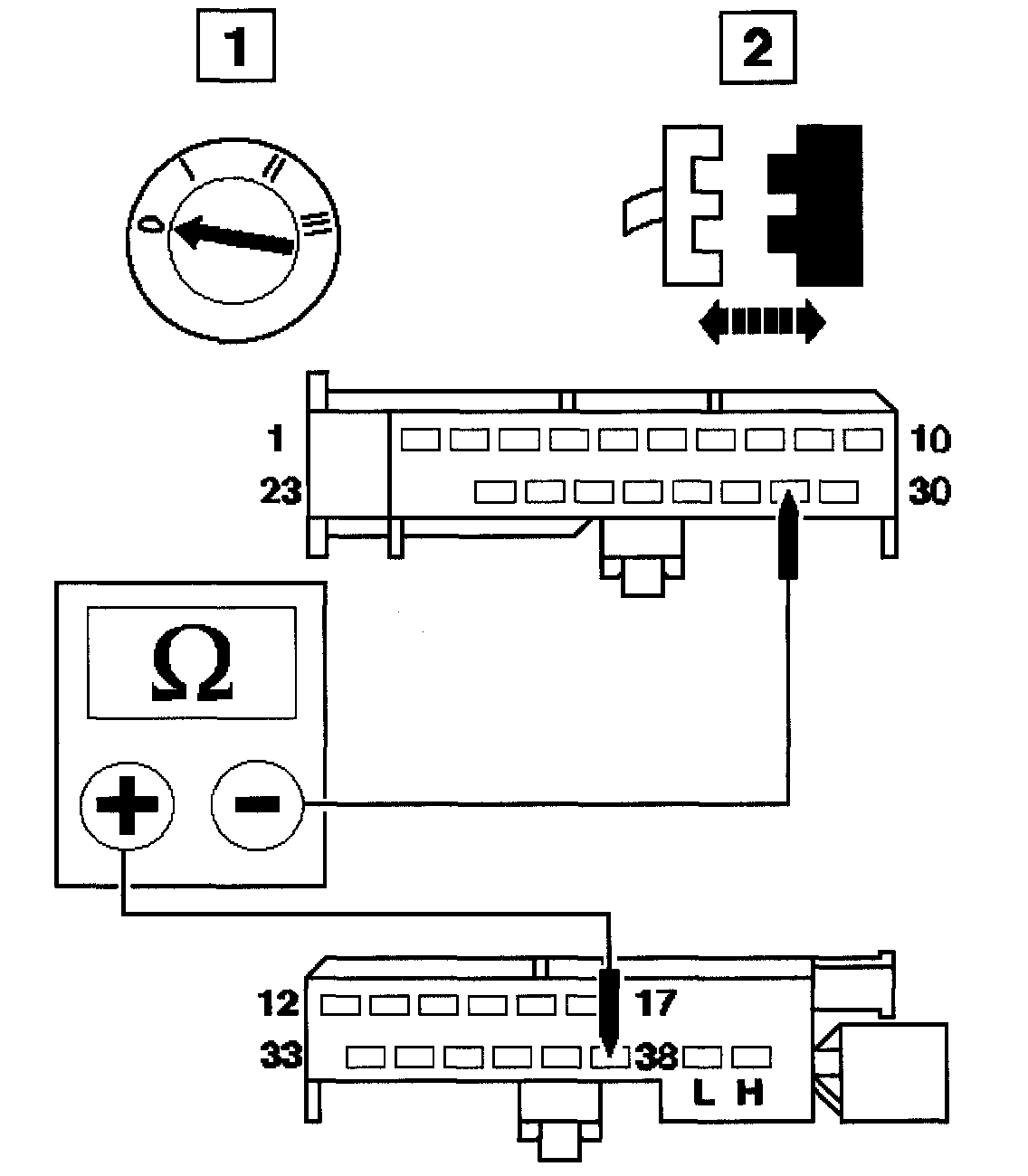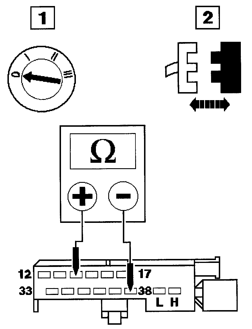 With EM062 disconnected, measure the resistance between the following, noting the relevant DTC