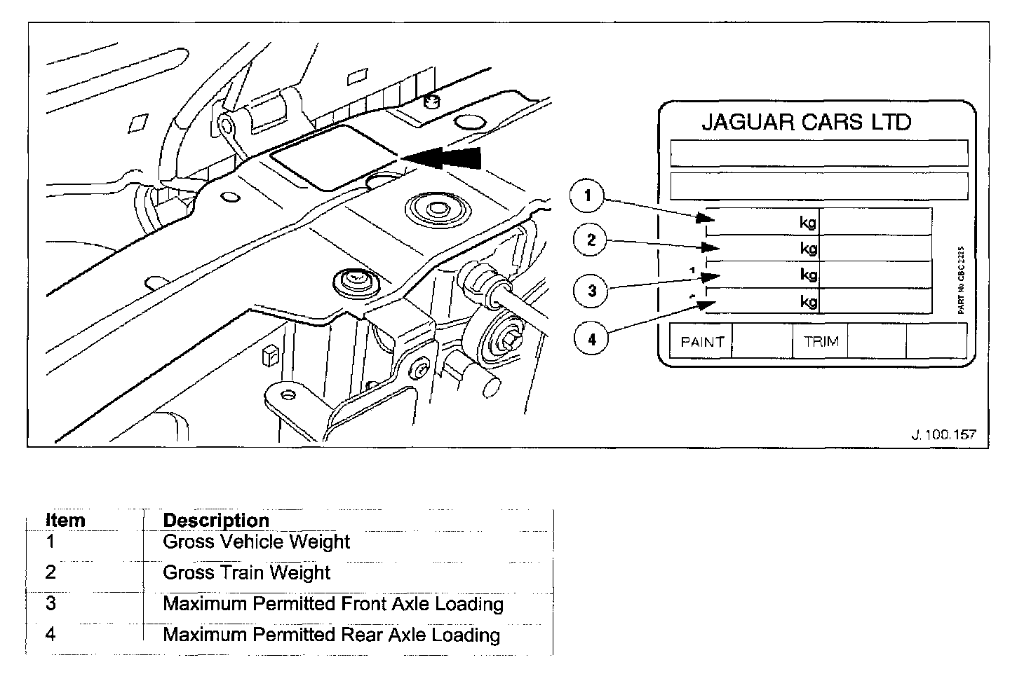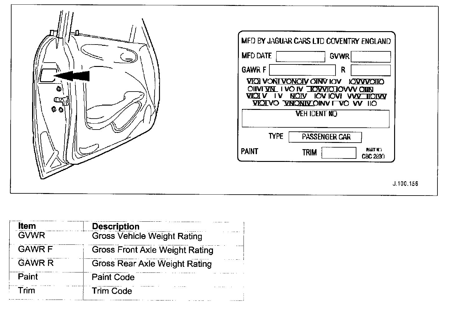Dependent upon market, the VIN and other information is displayed on a label located either on the rear edge of the LH front door or on the body front upper crossmember. For certain markets, the VIN appears on a bar code label referred to as the Certification Label and additionally carries the month and year of manufacture, vehicle weight data and paint and trim codes. The VIN is also displayed on a plate visible through the windshield. It is essential that the vehicle identification number (VIN) is quoted when ordering parts, and in all associated correspondence.