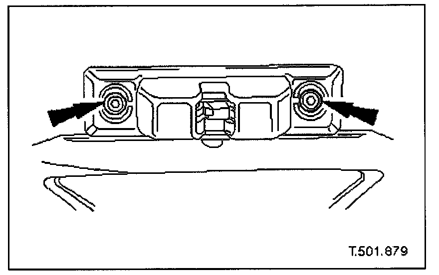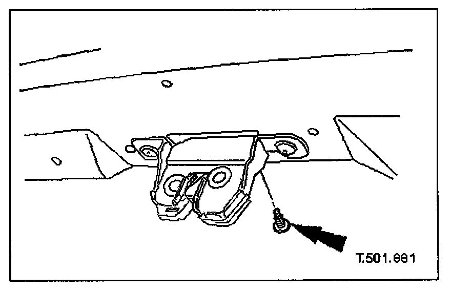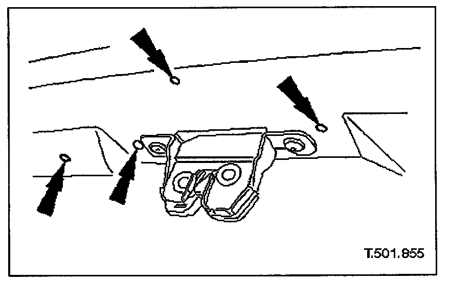 2. Remove covers from the two trunk latch finisher securing bolts and slacken and remove securing bolts.