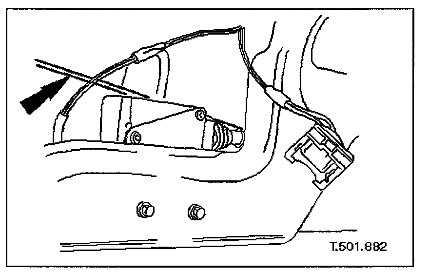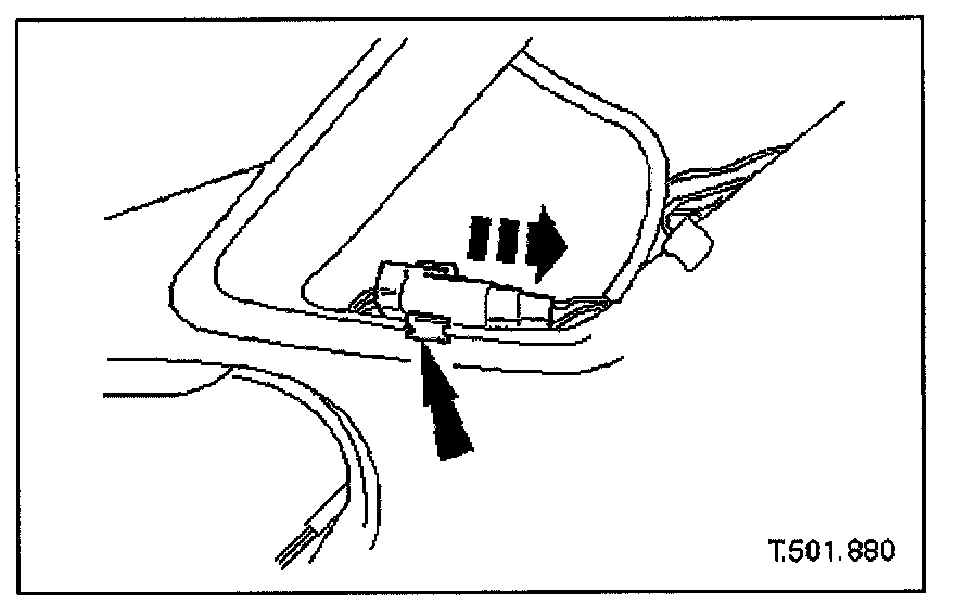 5. Release trunk open switch multiplug from retaining clip and disconnect multiplug.