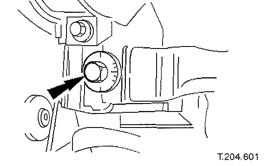 44. Ensuring graduation mark remains aligned, finally tighten wishbone rear eccentric bolt to 113 - 153 Nm.