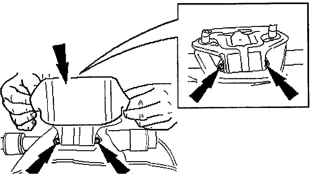 Install reservoir securing nuts and bolts.