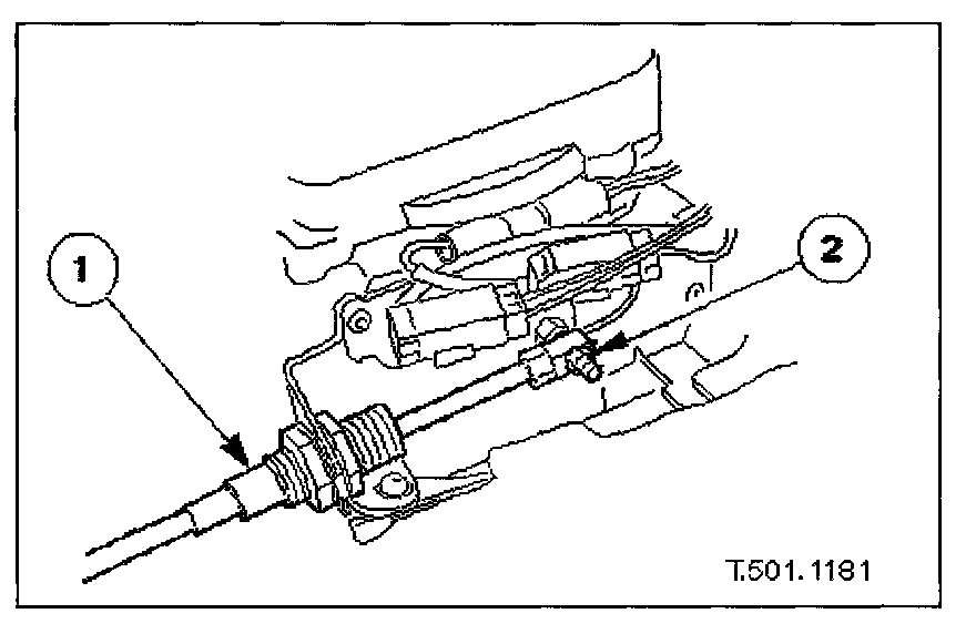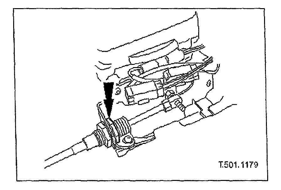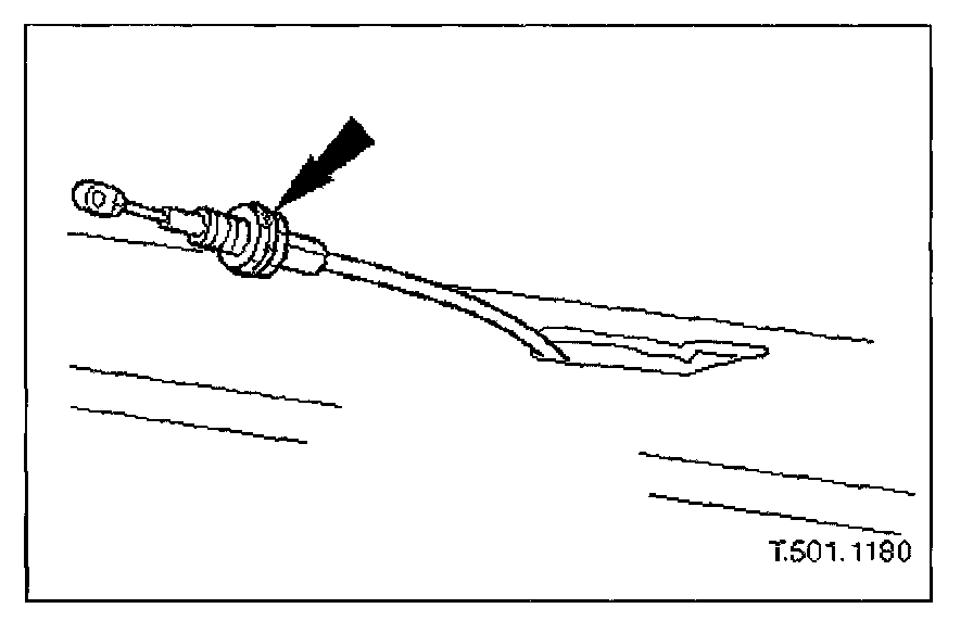 19. Slacken gear selector outer cable adjustment nut at front of support bracket.
