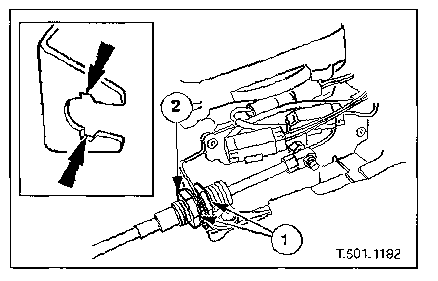 2. Tighten gear selector cable locknut, ensuring that tabwasher tangs engage in bracket slots.