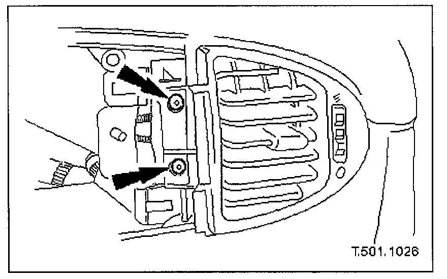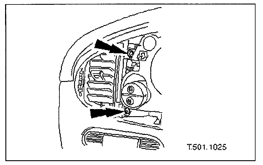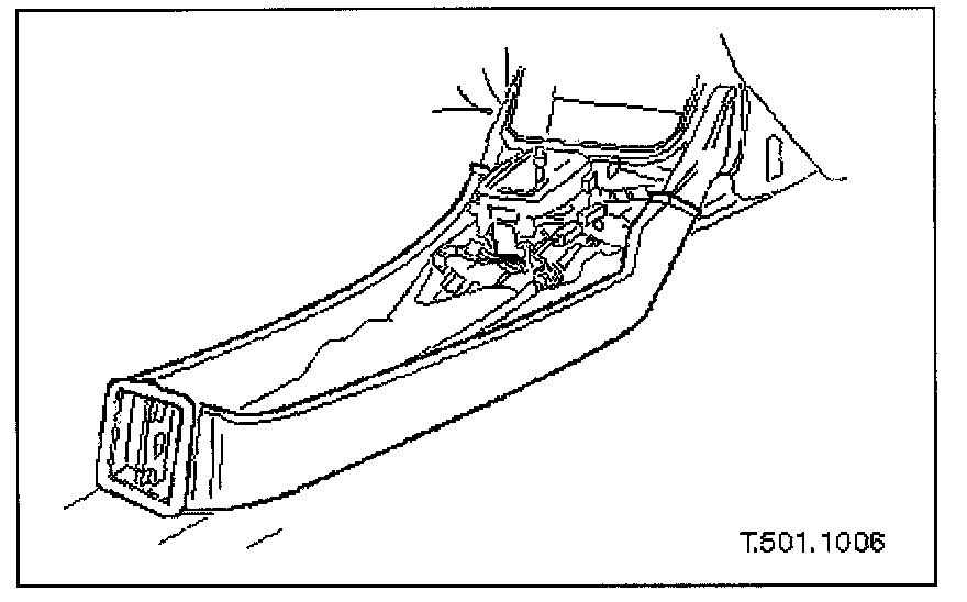 12. Slacken and remove center console vent duct rear securing screw and withdraw duct assembly from air conditioning unit manifold.