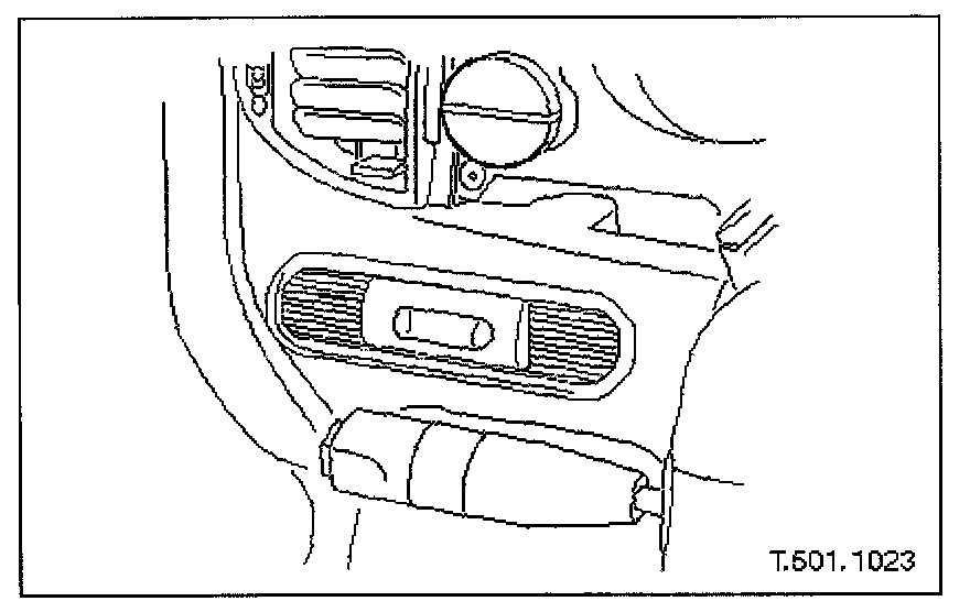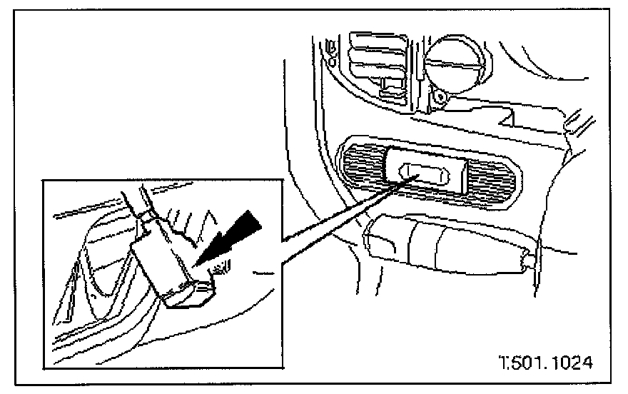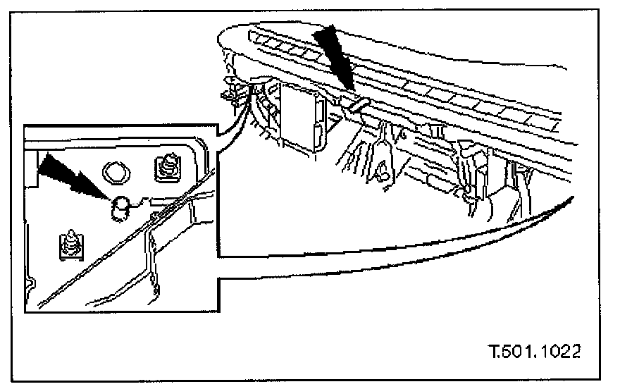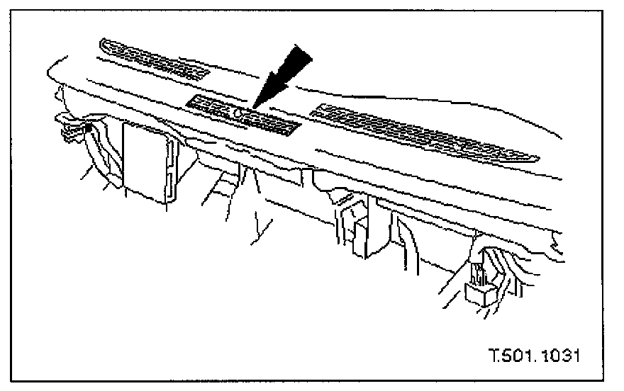 51. Release in-car sensor/trunk release switch assembly from facia for access and disconnect trunk release switch harness multiplug.