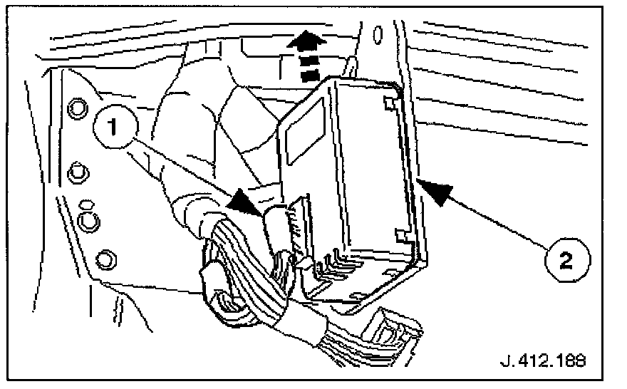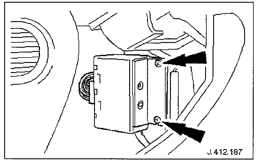 Remove two screws securing key transponder module to facia and remove transponder module.