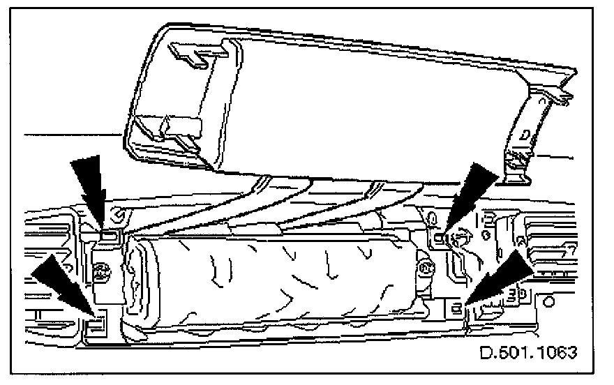 56. Partially withdraw airbag module, disconnect link harness multiplug and remove airbag from facia.