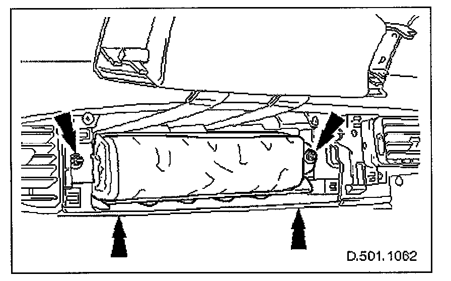 55. Remove and discard four nuts securing passenger air bag module to facia.