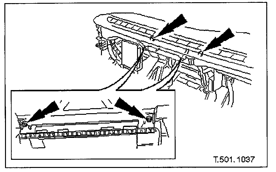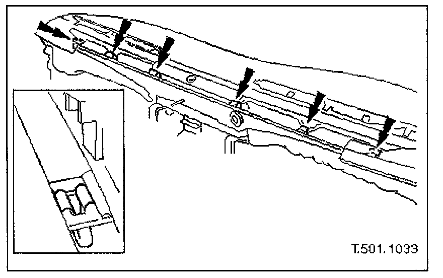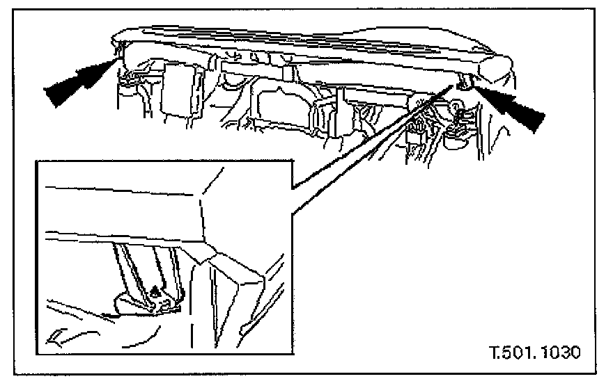 50. Remove and discard instrument panel veneer retaining plastic inserts from facia.