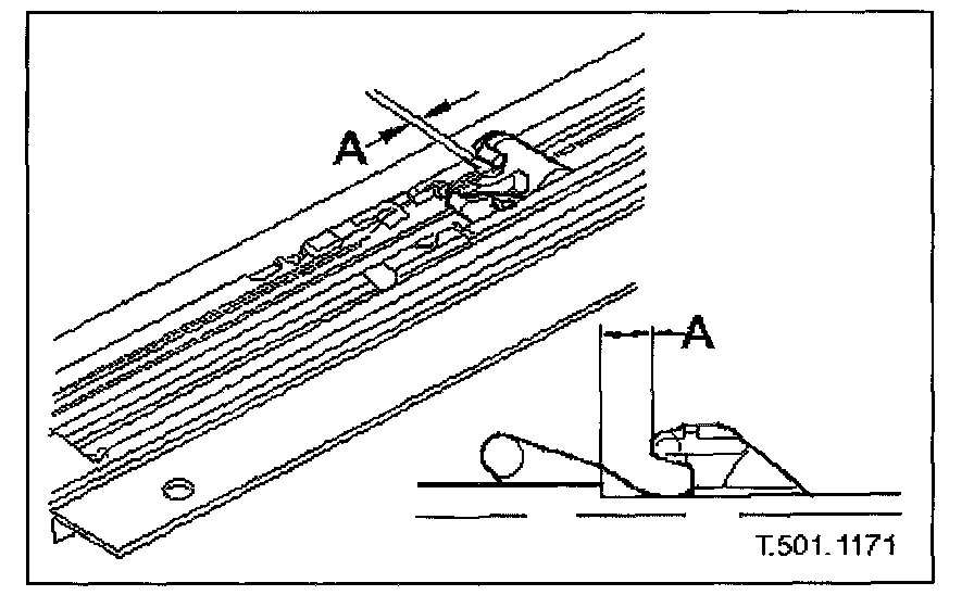 4. Position the sliding roof with an 8 mm gap between the driven lever and the guide rail step.