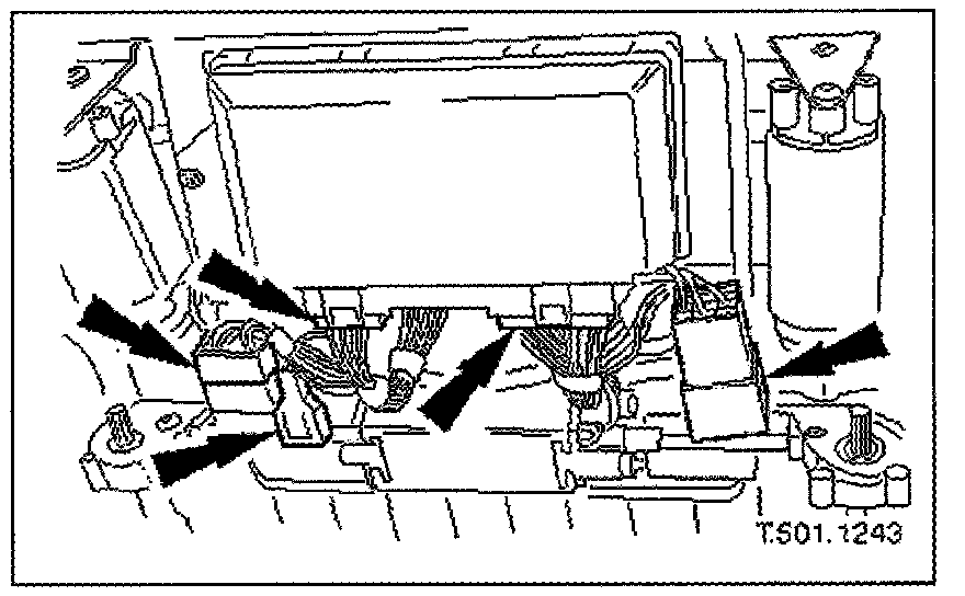 - Release from retaining brackets and disconnect seat harness multiplugs.