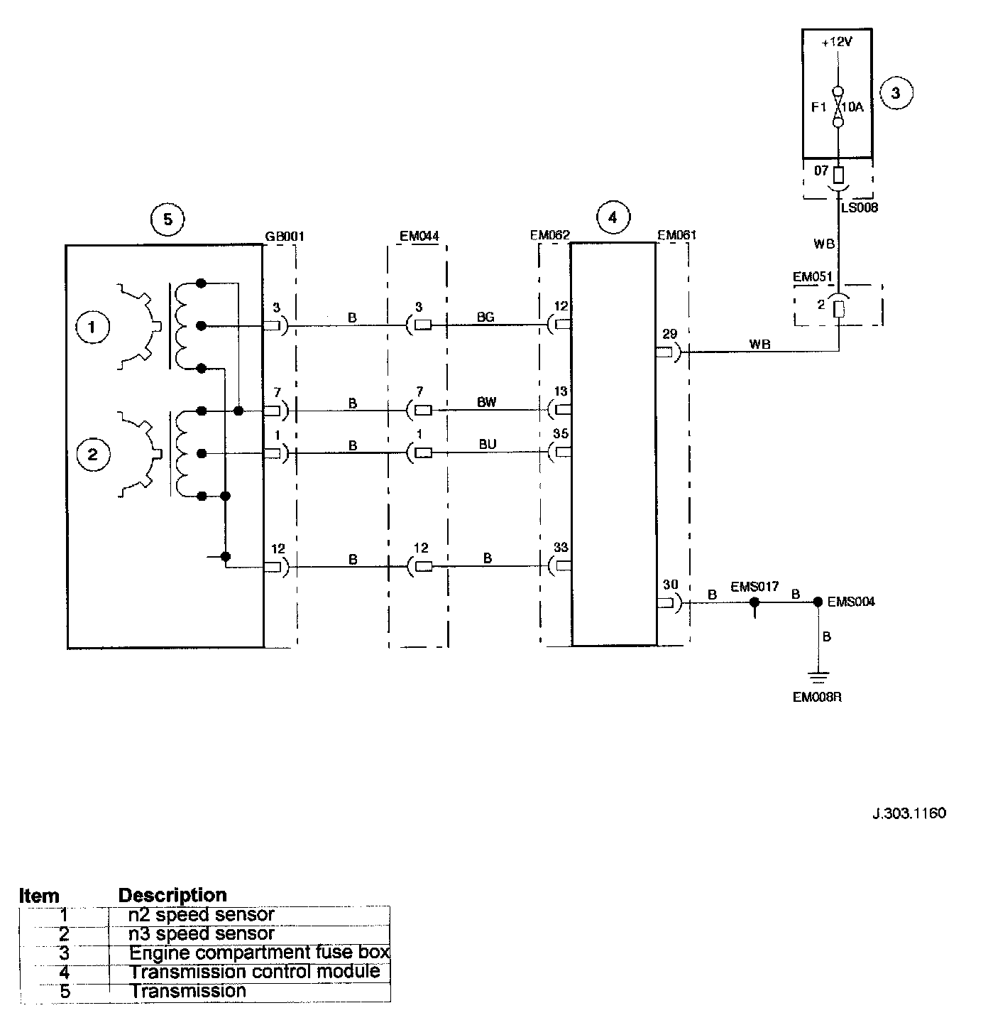 Transmission Pressure Regulators and Shift Solenoids Circuit Diagram