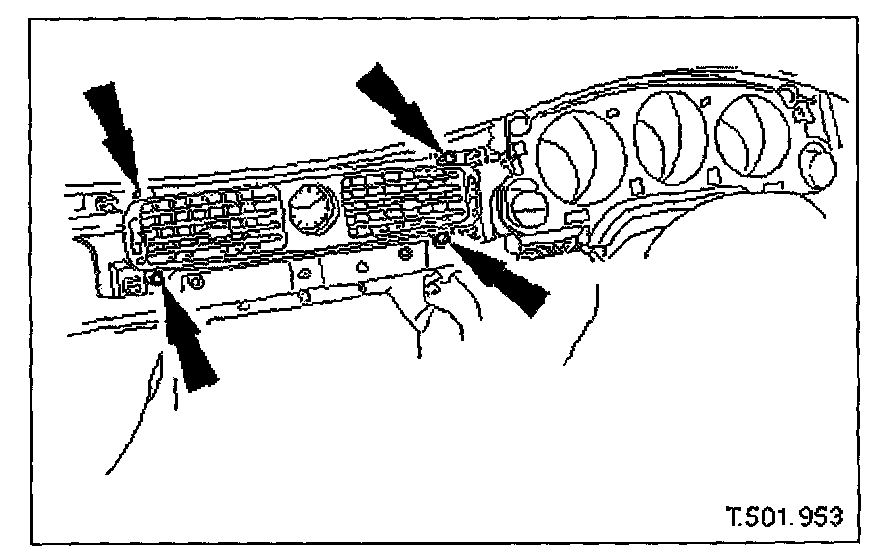 5. Slacken and remove four screws securing center vent assembly to fascia.