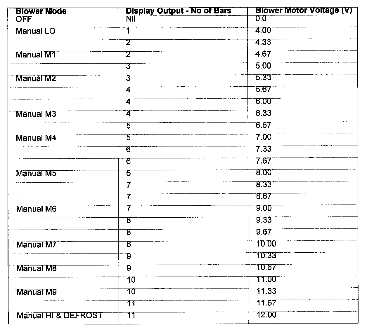 Relationship Manual Control Blower Speed / Voltage