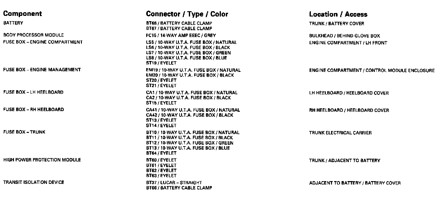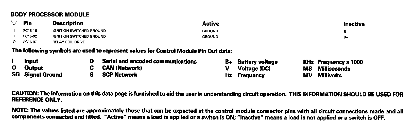 Control Module Pin Out Information