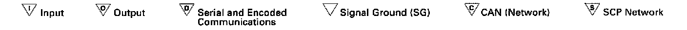 These six symbols are employed to assist the user in visualizing the "logic" of circuits containing control modules. The symbols identify control module input, output, data link, signal ground and network pins.