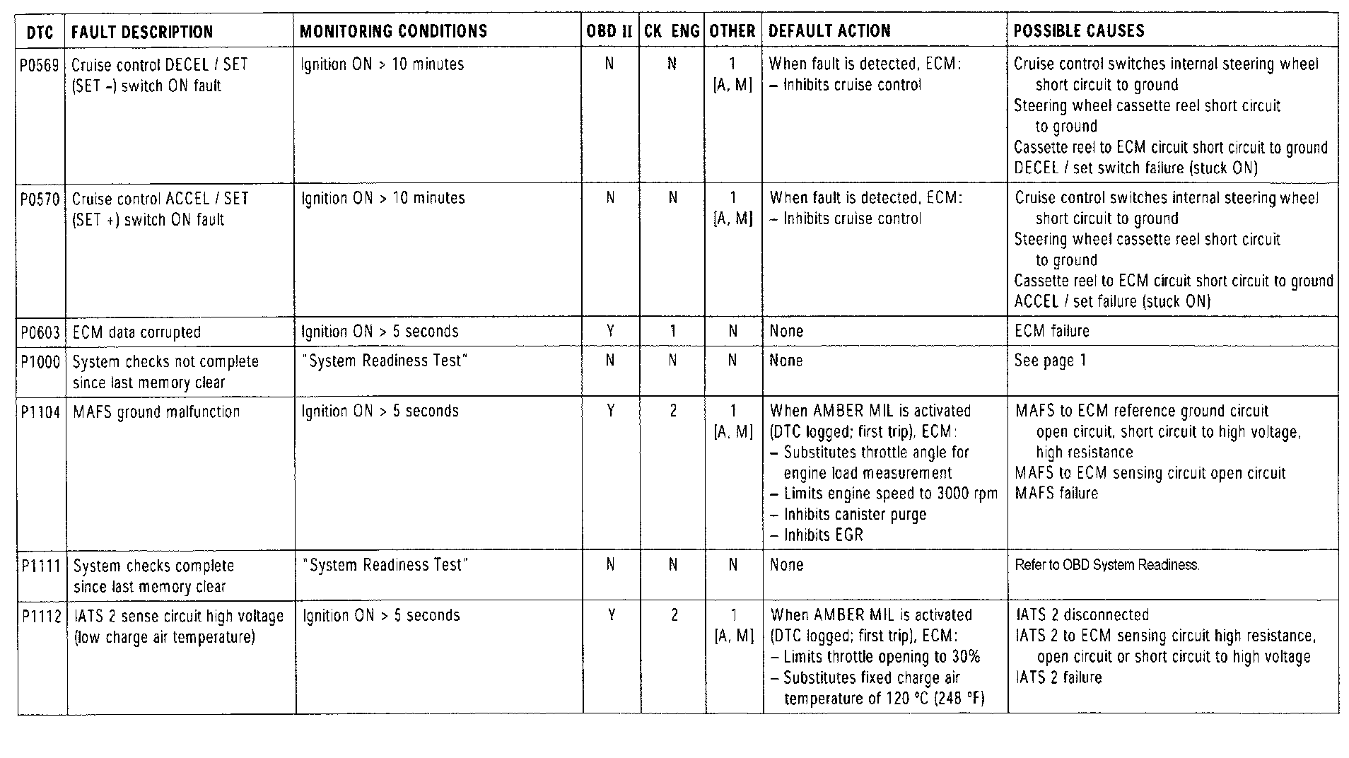 NOTE: For additional "P" Codes not listed in this summary, refer to the Transmission Control DTC Summary. For code P0335, refer to the climate control system trouble code summary.
