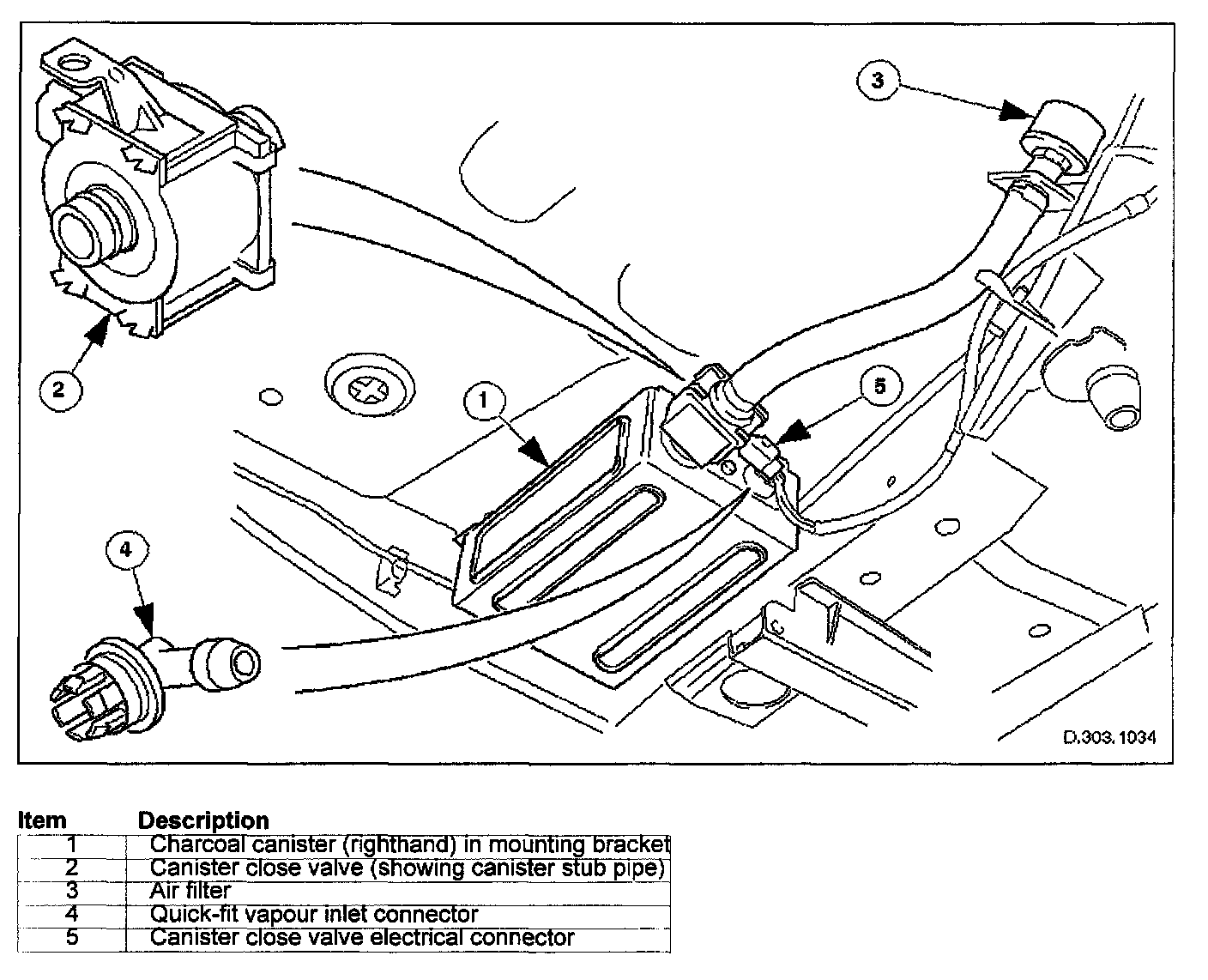 The canister close valve has a stub pipe with "O" ring seal which is a simple push fit into the canister. A mounting bracket on the canister close valve enables it to be secured to the underbody via the canister rear mounting bolt.