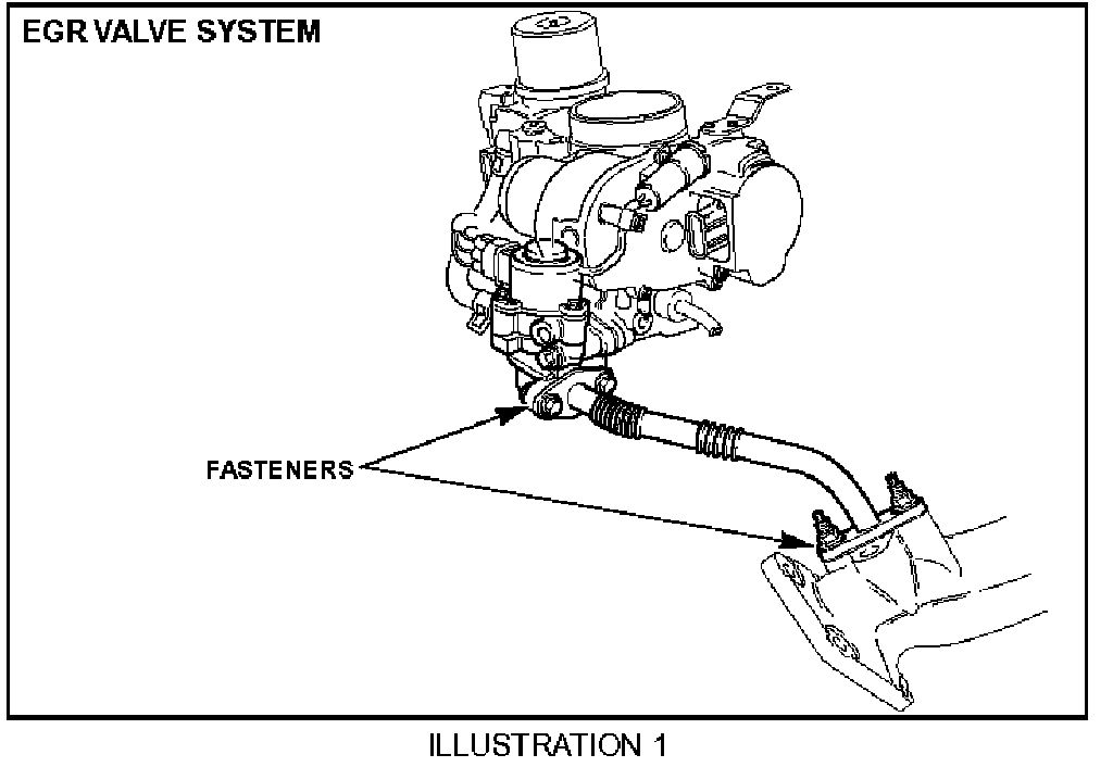 3. Loosen and remove the fasteners securing the EGR transfer pipe to the EGR valve (Illustration 1).