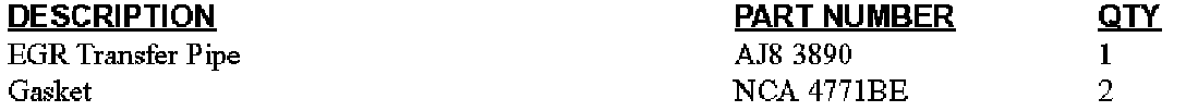 In order to reduce potential customer complaints the EGR transfer pipe must be replaced on all vehicles within the above VIN range at the next service opportunity or in case of a customer concern.