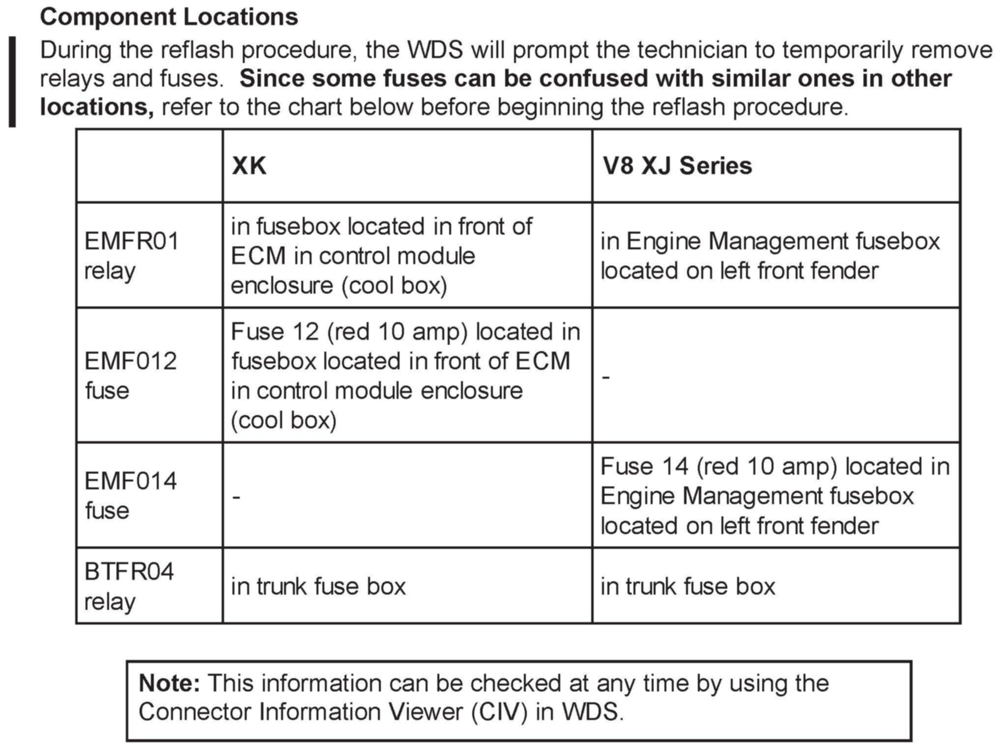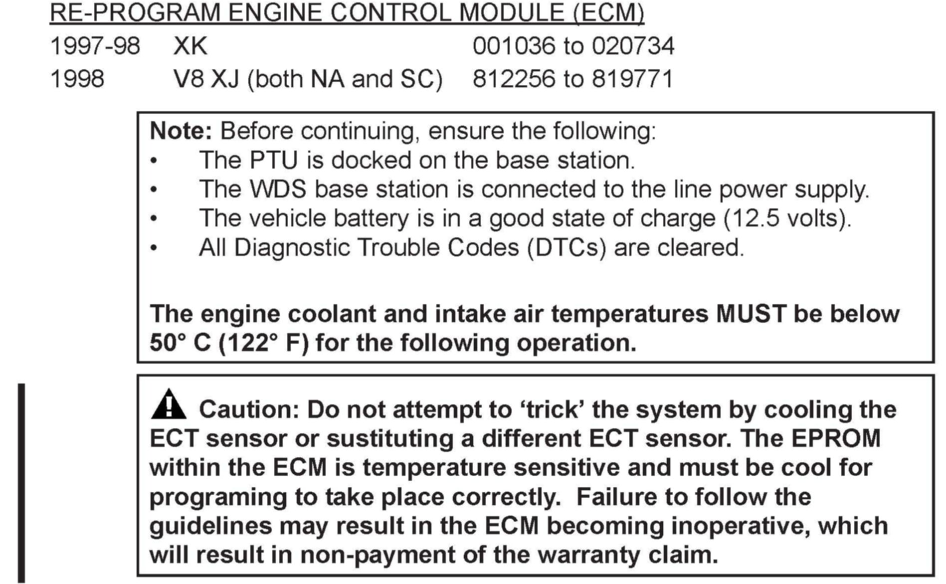 XK8 vehicles not equipped with KTM (VIN 001001-018107) and all V8 XJ Series (VIN 812256-819771)