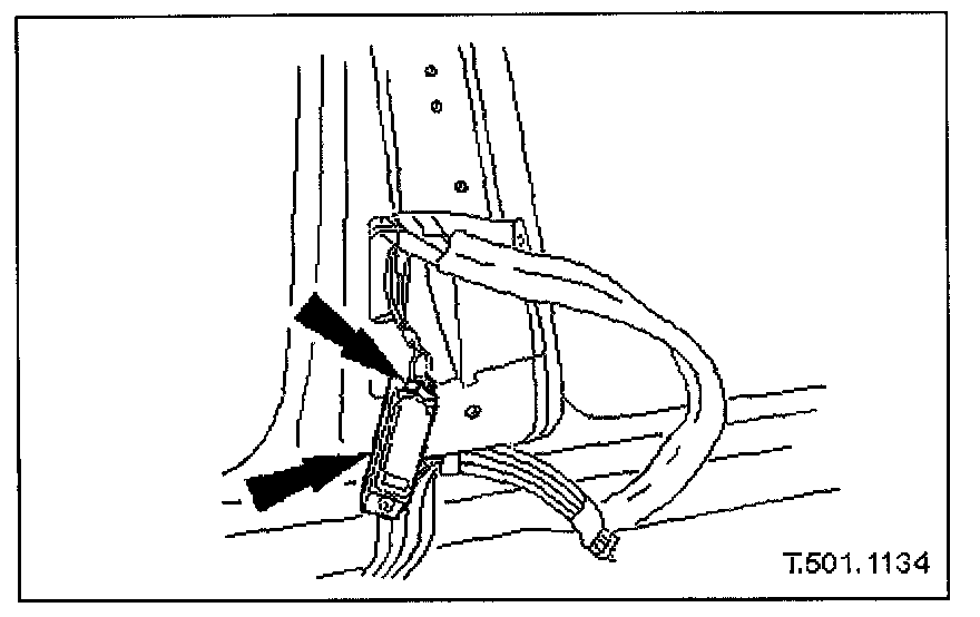 1. Position sensor at base of 'B' post and connect harness multiplug.