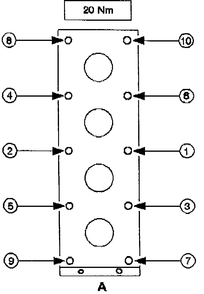 Stage 1 - tighten all M10 bolts in sequence to 20 Nm