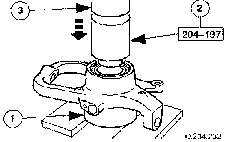 Position the vertical link so that the inboard side of the bearing bore is resting on suitable supports on the press-bed.