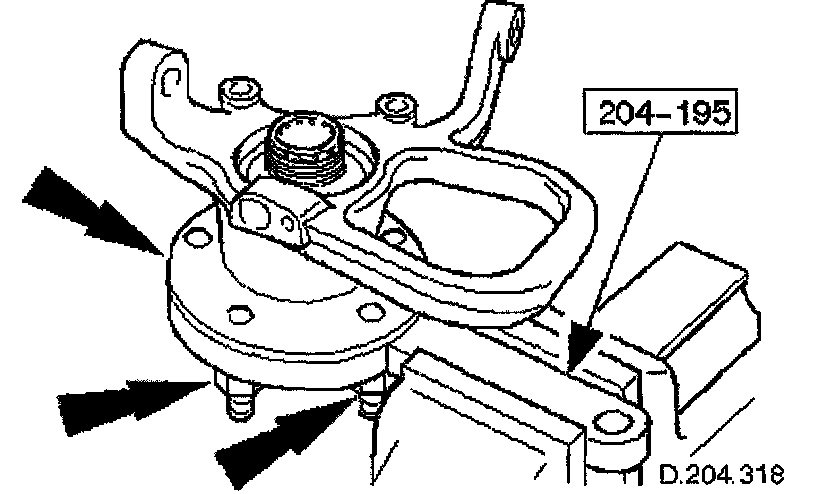 6. Using special tool, secure vertical link and hub assembly in a vise.