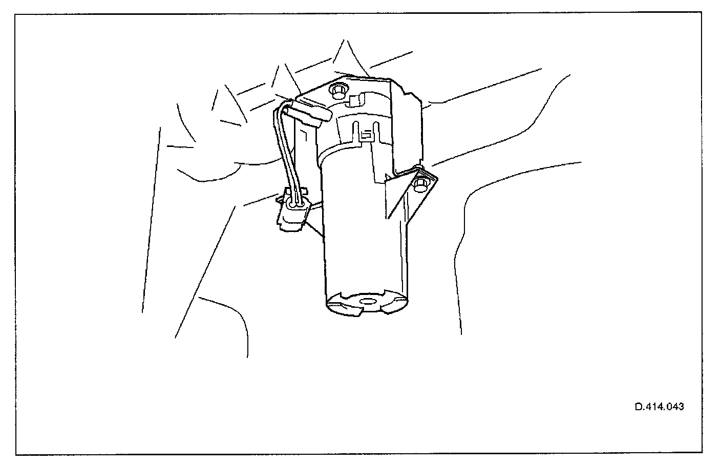 The module is located on the right hand side of the engine compartment, on the inner panel just above the chassis leg, adjacent to the generator. It is secured to two anti-vibration rubber mountings. The image shows the suppression module viewed from below the vehicle.