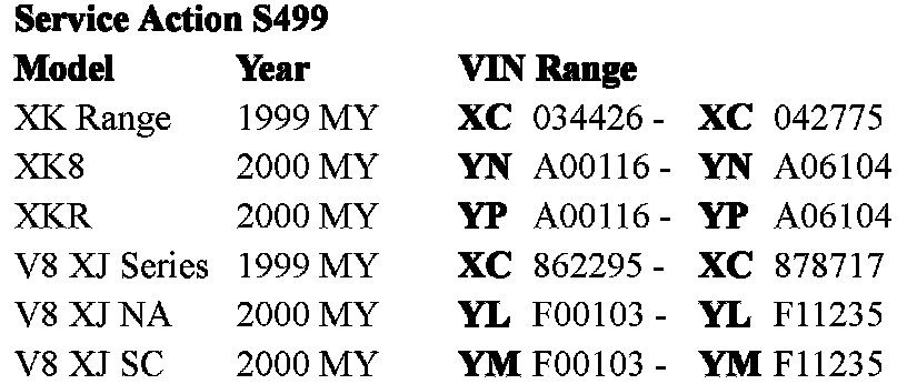 Analysis has confirmed vehicles manufactured after February 2000 are less likely to exhibit this concern due to manufacturing improvements to parts used from that date. Therefore, this action is only applicable to vehicles within the above VIN range.