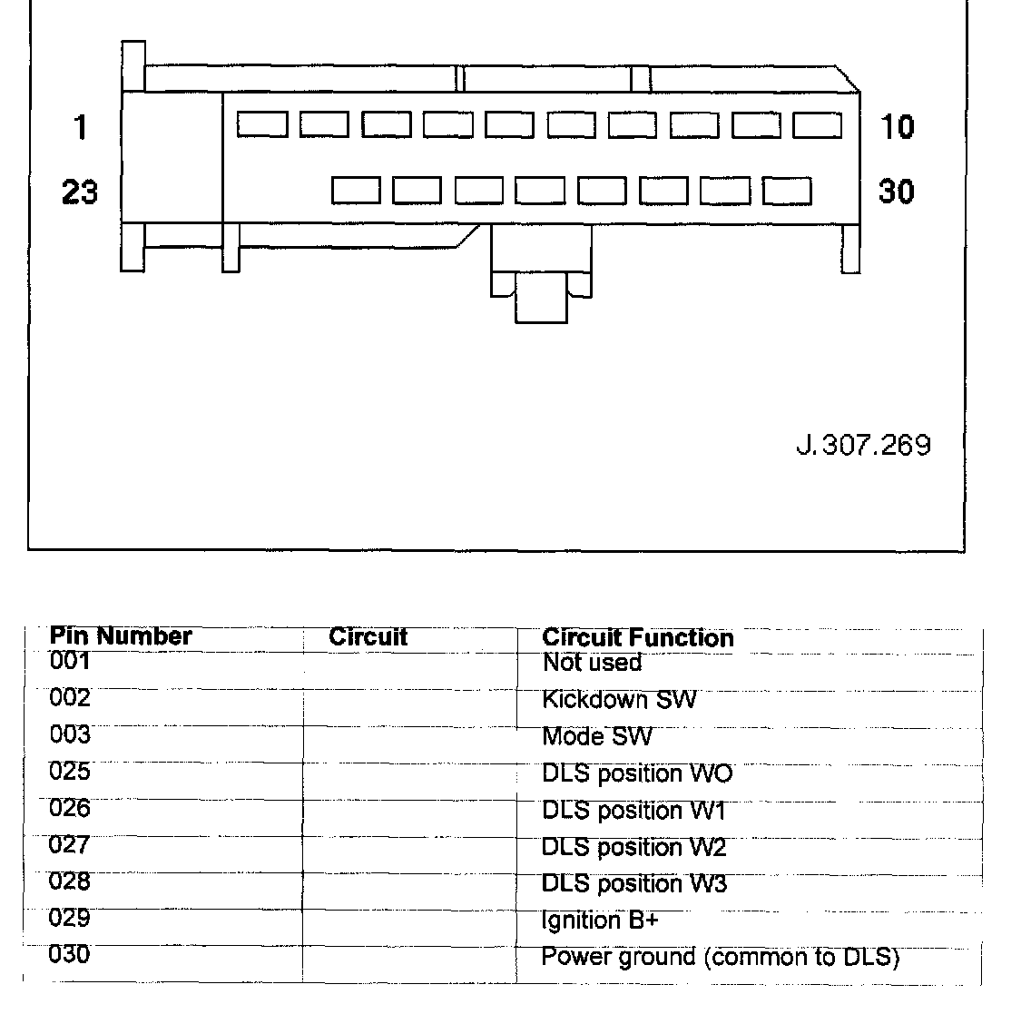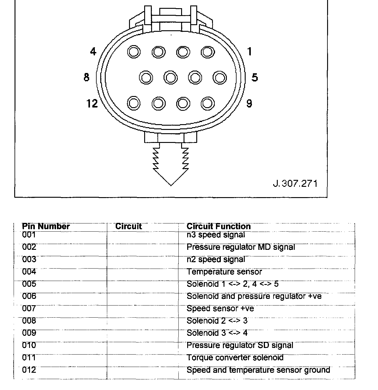 Connector Pin Identity Chart for CC008