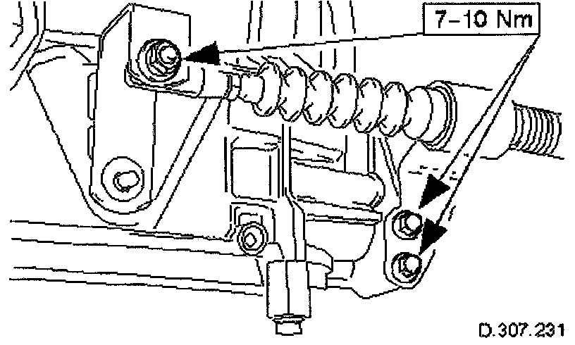 11. Connect the selector cable. Tighten the bolts and one nut to the specified torque figure.