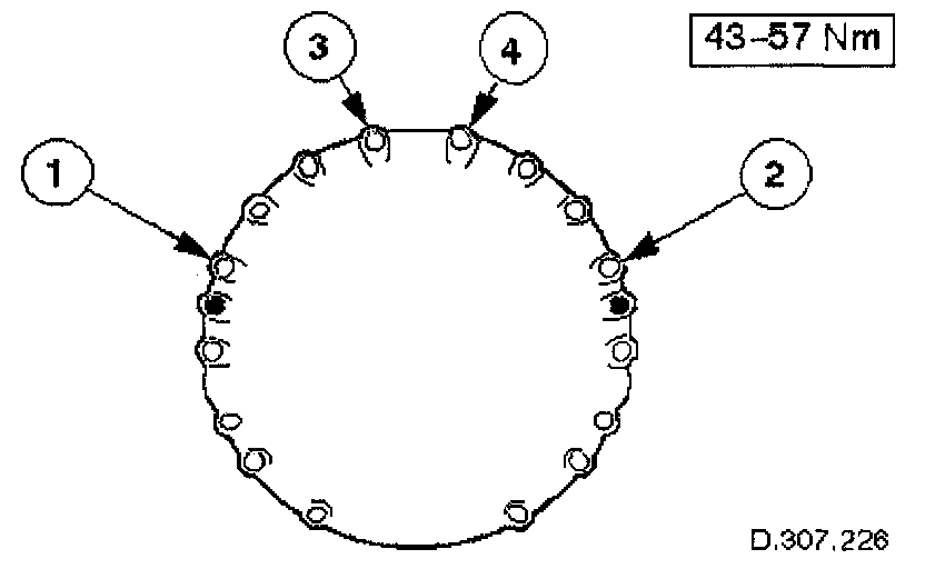 Refer to the illustration - tighten in sequence 1,2,3,4 then in any order.