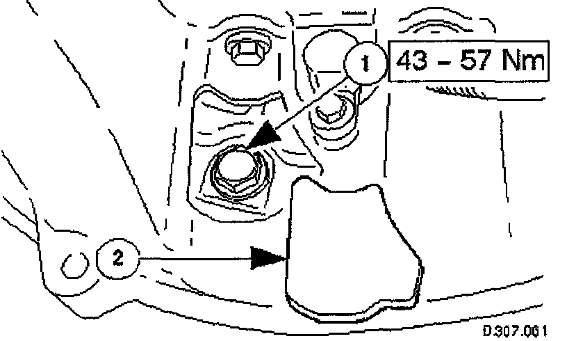 6. Fit the mounting bracket for the front muffler. Tighten the two bolts to the specified torque figure.