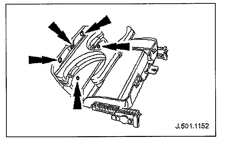 3. Slacken and remove two screws securing glove box lid to console and remove lid from console.