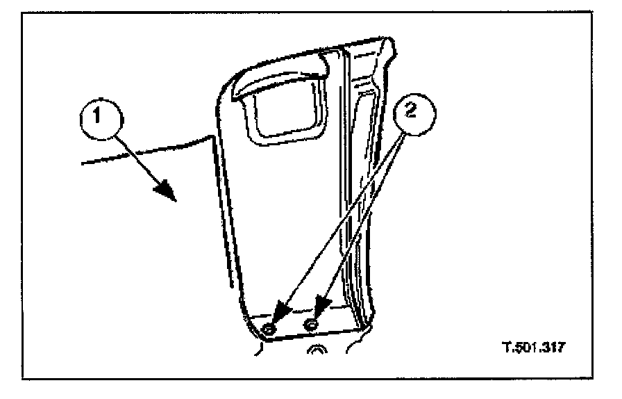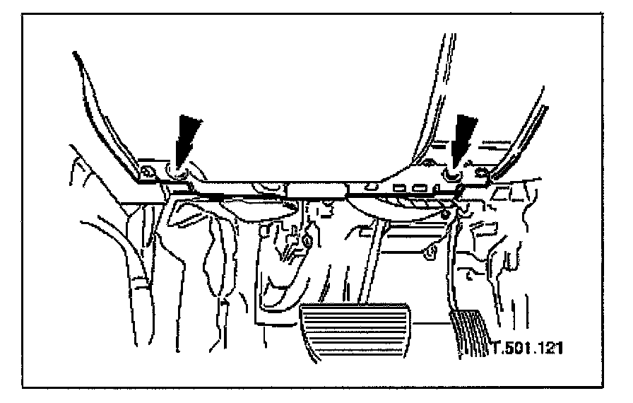 2. Slacken and remove the two screws securing the lower underscuttle to the fascia panel cross-member.