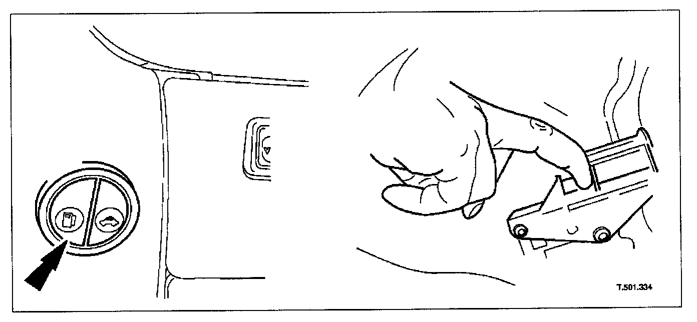 The fuel filler flap is released via a switch located on the driver's underscuttle. This switch will only operate if the engine is not running and the vehicle is unlocked or the ignition is in position I or II.