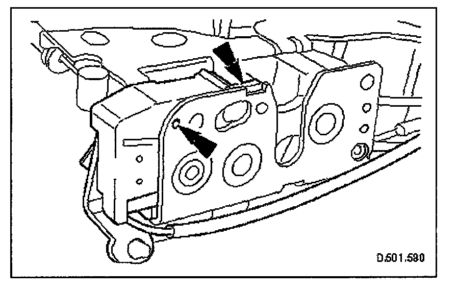 11. Release door lock/unlock switch securing tang, depress pip and remove switch from latch assembly.