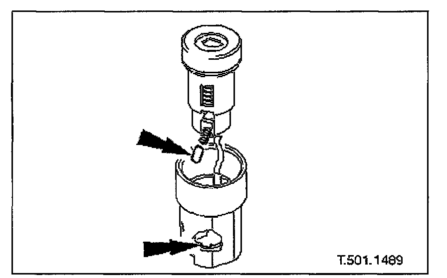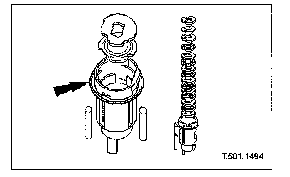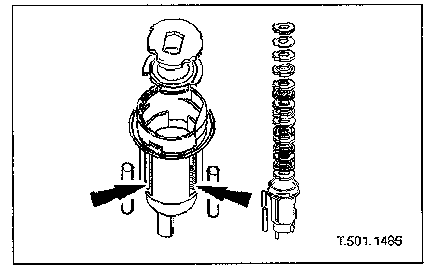 7. Remove circlip securing operating arm to lock barrel and remove operating arm and bias spring from barrel.