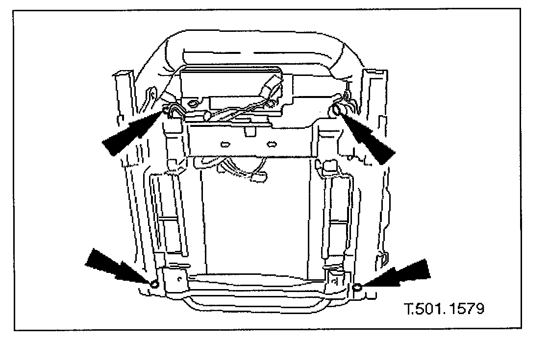 7. Remove bolts securing seat slide assembly to seat frame and withdraw slide assembly.