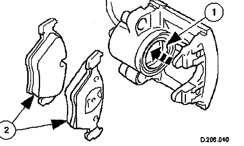 1. Install brake pads into caliper housing.