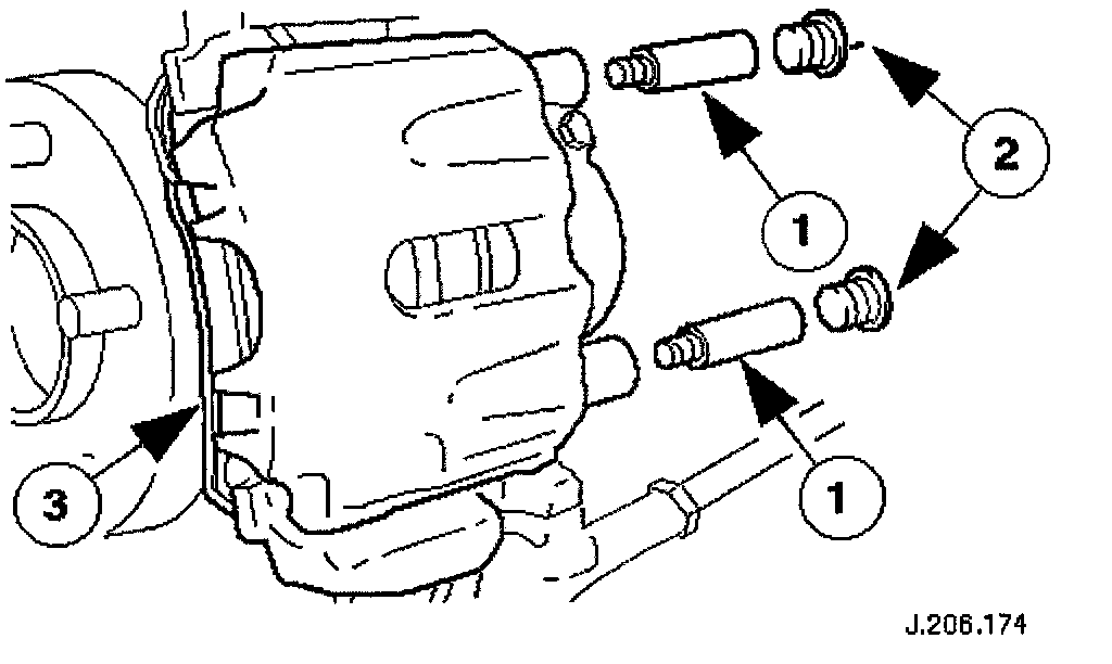 CAUTION: Retracting the caliper piston may cause the fluid reservoir to over-flow. Remove brake fluid spillage immediately from paint work, with clean water.