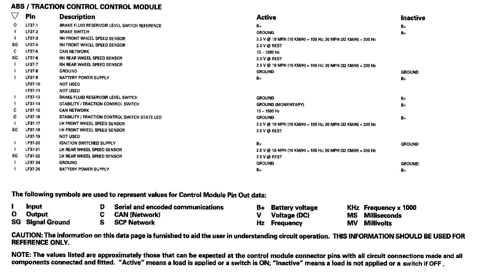 Control Module Pin Out Information
